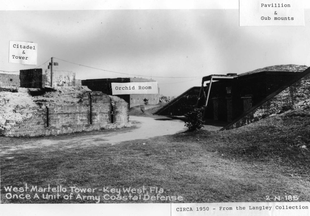 West Martello claimed as an eyesore to shoreline. Pressure on County to level the Tower and put in a new beach area. Representative Joe Allen appalled to see what remained of the old fort prevailed on commissioners to stop the demolition. The Key West Garden Club took interest in the old fort. Through the efforts of Representative Allen, lend-lease agreement arranged between Monroe County and the Garden Club