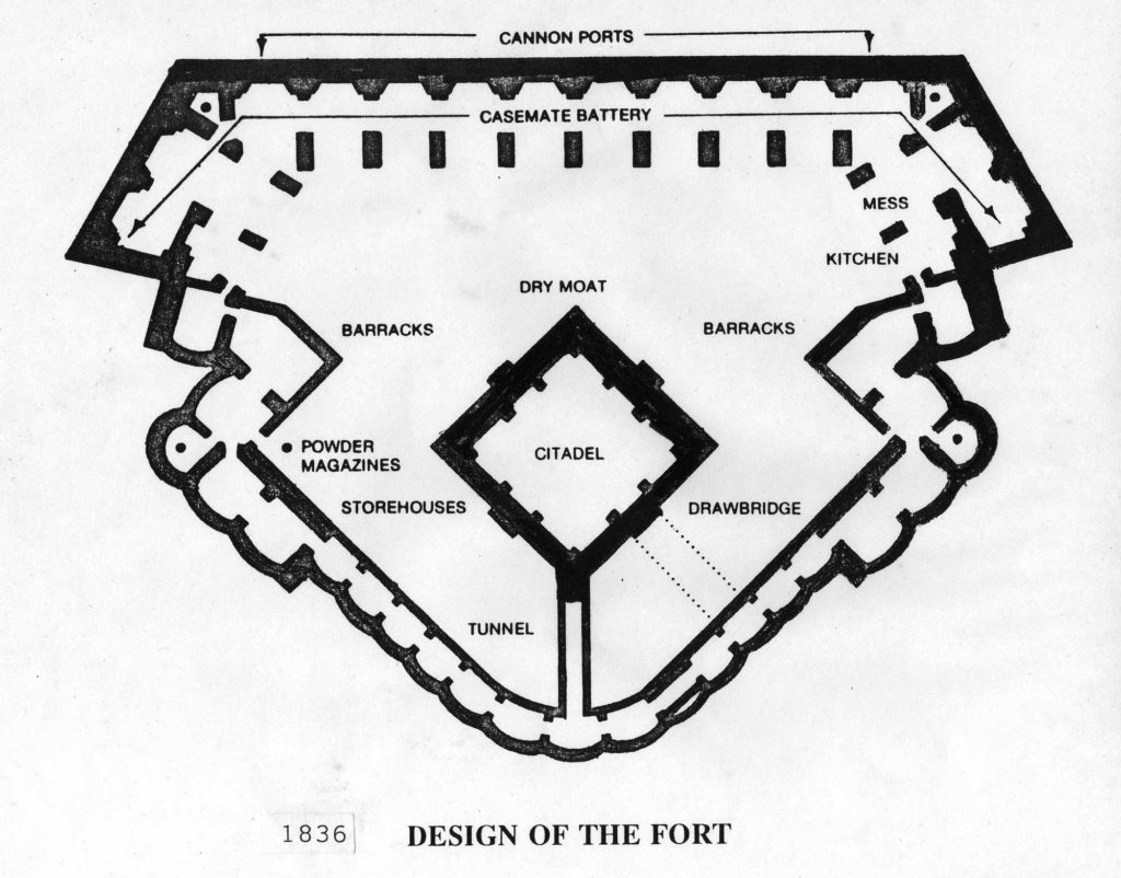 Plans drawn up by Col. Joseph Gilmore Totten, US Army and Col. Simon Bernard, a French military engineer, for a set of nine forts. Cost revised to one large fort and two advanced batteries – the Martello Towers
